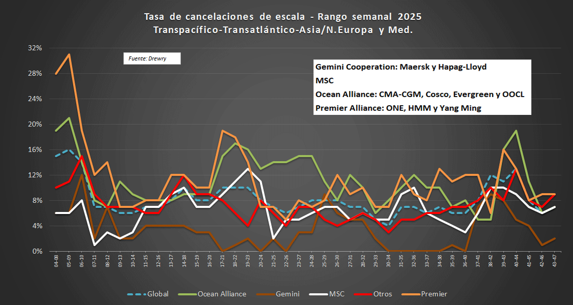 Cancelaciones de escala - Análisis semanal Drewry: 17 de Octubre de 2025