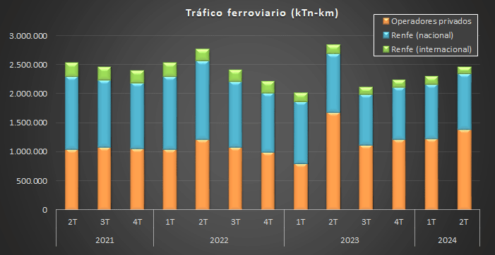 Desde el tercer trimestre de 2023 se observa un lento pero sostenido crecimiento del transporte ferroviario realizado por los operadores privados