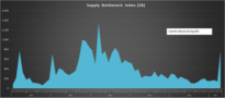 Según datos del Banco de España, el índice mensual de cuellos de botella en la cadena de suministro ha crecido un 458% en el mes de abril, pasando de 140 a 782 puntos. Este valor indica, entre otras cosas un aumento en la congestión portuaria.