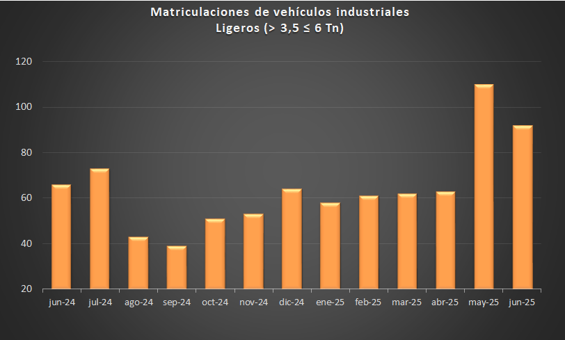 Según datos de ANFAC / Ideauto, en el mes de junio las matriculaciones de vehículos industriales sufrieron una caída del 6,2% y 2.597 ventas. En el total del año, suman 14.044 unidades, un 13,6% menos que en 2024. Por tipo de vehículos, el mayor retroceso viene de los pesados rígidos, que caen un 26,4%, con 2.907 ventas, mientras que las ventas de ligeros crecen un 39,4%, con 92 nuevas unidades vendidas.
