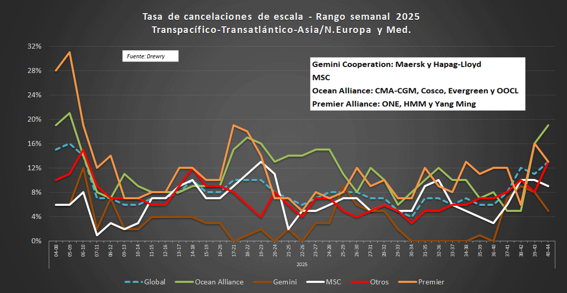 Cancelaciones de escala - Análisis semanal Drewry: 26 de Octubre de 2025