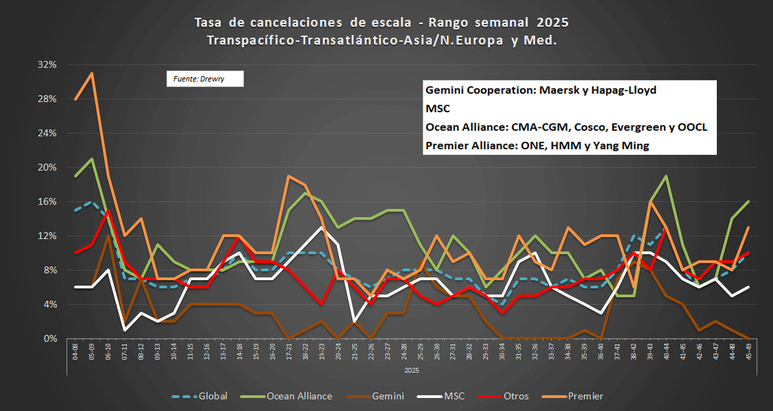 Cancelaciones de escala - Análisis semanal Drewry: 30 de Octubre de 2025