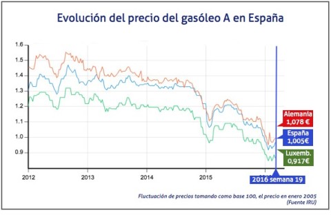 El precio del gasóleo en España sigue siendo menor que en la media de la Unión Europea, donde el precio del litro de gasóleo se sitúa en 1,117 euros. Por su parte, en la zona euro, asciende a 1,096 euros.