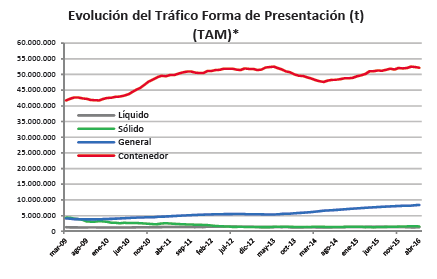 Asimismo, durante este periodo se han manipulado 265.640 automóviles, un 18,55% más que en 2015. Igualmente, el tráfico ro-ro aumenta un 16,21% con un total de 3.148.407 toneladas. Los graneles líquidos, con 1.339.945 toneladas, han crecido un 31,78%, mientras que los graneles sólidos, por su parte, retroceden un 10,72% hasta las 705.283 toneladas.