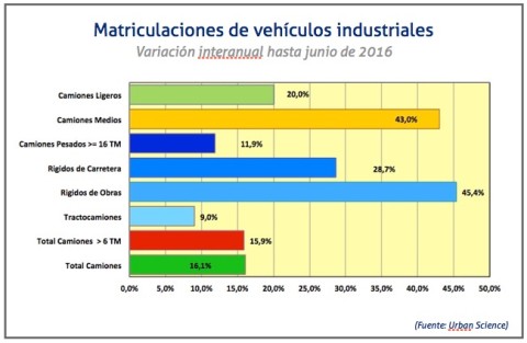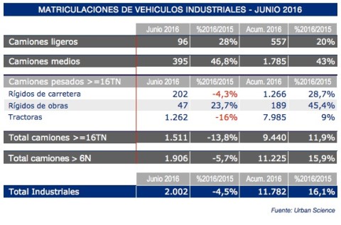 El acumulado del primer semestre de 2016 refleja un importante crecimiento del sector en el presente ejercicio, con un aumento de las unidades matriculadas del 16,1% con respecto al mismo periodo del ejercicio anterior.