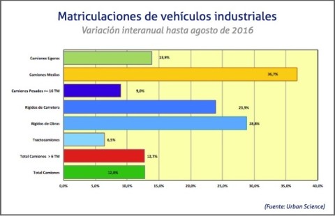 El mercado de vehículos industriales en agosto de 2016 ha aumentado un 24% en comparación con el octavo mes de 2015. En total, se han matriculado en 1.397 vehículos, lo que supone 270 unidades más que en agosto del ejercicio anterior, según los datos de Aniacam.