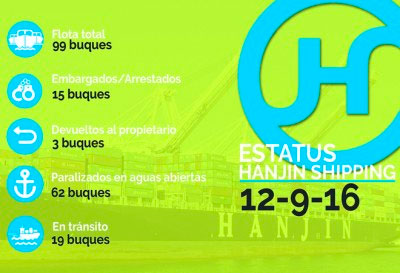 Los otros 18 buques se encaminan hacia puertos donde ya les esperan otros compañeros bloqueados, bien por la prohibición de prestación de servicios por parte de los distintos agentes portuarios, o directamente por la amenaza de embargo, como es el caso del “Hanjin Bremerhaven”, que va camino del Canal de Panamá, donde, además de tener prohibido el paso, le espera ya arrestado el “Hanjin Baltimore”.