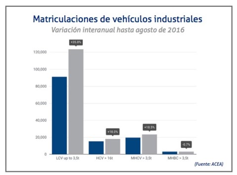 Las matriculaciones de vehículos industriales en el mercado europeo han alcanzado las 150.425 unidades durante el mes de agosto de 2016, lo que supone un aumento del 31,8% respecto al mismo mes del año anterior, según datos de la Asociación de Constructores Europeos de Automóviles, Acea.