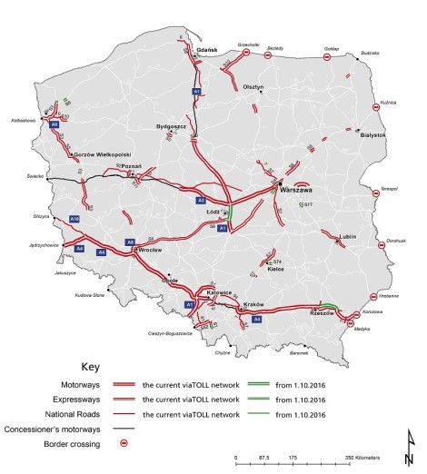El Consejo de Ministros de Polonia aprobó, el pasado 19 de julio de 2016, la modificación en la ordenanza que regula los tramos de carreteras polacos en el que son aplicados los pagos electrónicos, para incluir otros 82 km de autopistas y 68 km de autovías en dicha red.