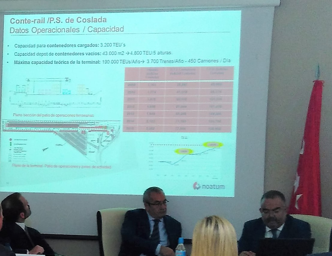 Por su parte, D. Felipe Mendaña realizó una interesante presentación de las funcionalidades del Puerto Seco de Coslada, y sus excelentes conexiones ferroviarias con los principales puertos de España y Portugal.