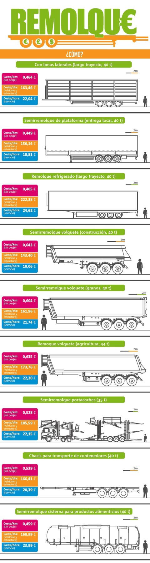 En la siguiente infografía se recogen los distintos costes para cada tipo de semirremolque, según los principales modelos que pueden verse en las carreteras actualmente, según los datos del Consejo de Europa.
