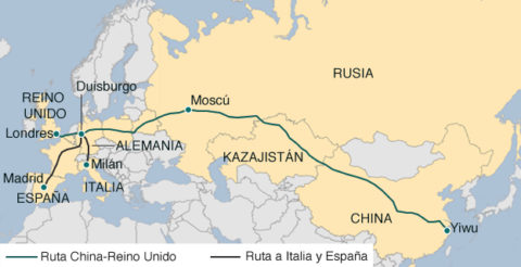 En el marco del proyecto ‘One Belt, One Road‘ (OBOR) impulsado por China desde 2013 para constituir una nueva ruta de la seda, el 1 de enero de 2017 se ha puesto en marcha un nuevo servicio directo de transporte ferroviario de mercancías entre la ciudad china de Yiwu y Reino Unido.