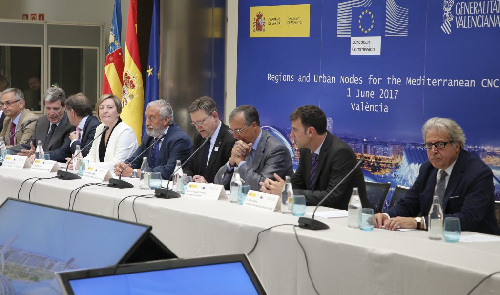 El Edificio del Reloj del puerto de Valencia volvió a convertirse ayer en la sede del Corredor Mediterráneo al acoger la jornada sobre «Nodos Urbanos y Regiones del Corredor Mediterráneo», promovida por la Comisión Europea, que reunió al coordinador europeo del Corredor Mediterráneo, Laurens Jan Brinkhorst; al president de la Generalitat, Ximo Puig; al Secretario de Estado de Infraestructuras, Transporte y Vivienda, Julio Gómez-Pomar; y la consellera de Vivienda, Obras Públicas y Vertebración del Territorio, MªJosé Salvador, entre otros.