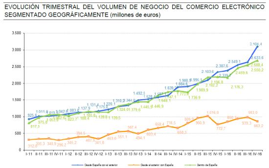 El comercio electrónico supera en España los 24 mil millones de euros en el año 2016, un 20,8% más que el 2015