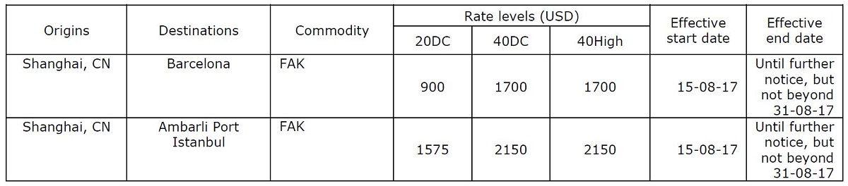 Las tarifas de Lejano Oriente al Mediterráneo han aumentado para todo tipo de mercancías. A modo de ejemplo, a continuación puede ver los niveles, tipo de contenedores y la estructura del recargo FAK en algunos corredores, válidos a partir del 15 de agosto y hasta nuevo aviso.