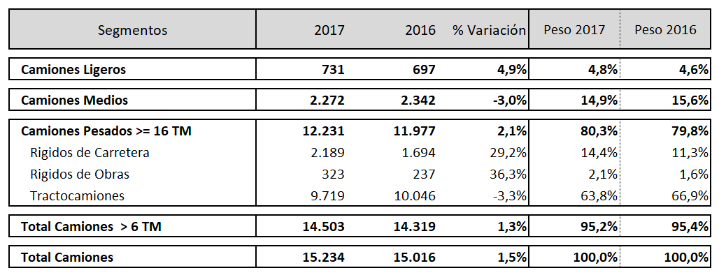 Matriculaciones Camiones (Enero – Agosto 2017)