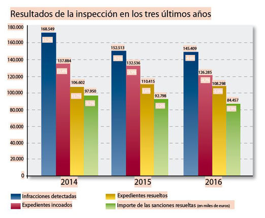 El dato relativo a las infracciones detectadas es otro que ha descendido: 145.409 en 2016 frente a las 152.513 el año anterior (y 165.237 en 2009).