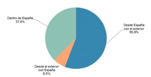 Por número de transacciones, el 44,1% de las compraventas se registran en webs españolas y el 55,9% en webs del extranjero.