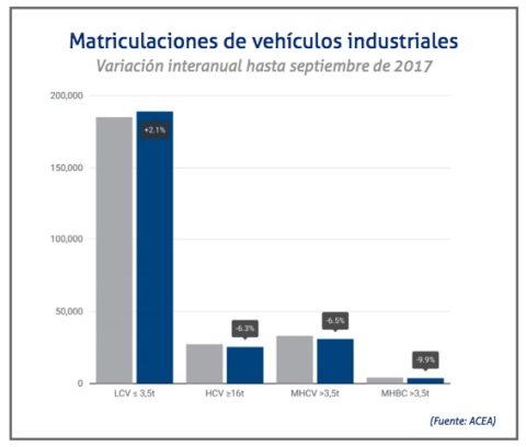 En el segmento de los vehículos industriales de más de 3,5 toneladas, se han registrado un total de 31.109 unidades matriculadas, un 6,5% menos que en septiembre de 2016. En todos los países, se ha registrado una disminución de la demanda.