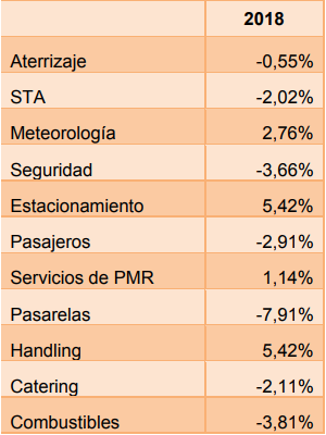 Propuesta de tarifas de Aena para 2018