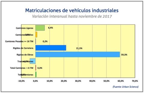 El acumulado hasta septiembre de 2017 refleja un pequeño repunte del 0,6% en las unidades matriculadas con respecto al mismo periodo del ejercicio anterior, con un total de 23.484 vehículos industriales en total.