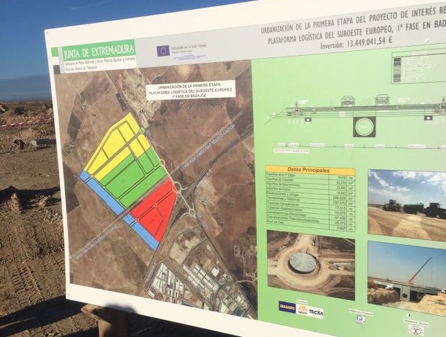 La primera fase del proyecto de la Plataforma Logística del Suroeste Europeo, en Badajoz, estará finalizada en mayo de 2018, por lo que las empresas que estén interesadas podrían empezar a instalarse a partir de entonces en las 114 parcelas disponibles.