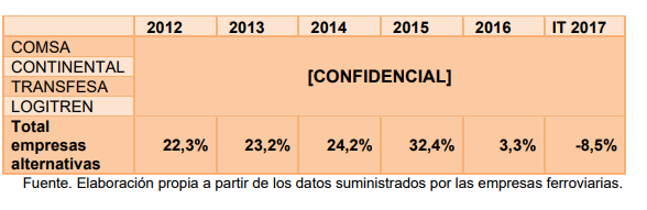 Esta política de contratación supuso que los competidores de Renfe no pudieron suplir esas bajas y sufrieron importantes pérdidas de personal en sus plantillas. De esta forma, la capacidad de ofrecer a los clientes servicios de mercancías alternativos a los de Renfe también se vio seriamente afectada. De hecho, según los datos de la CNMC, estas compañías han reducido su actividad de forma notable en 2016 y 2017.