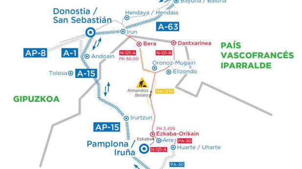De conformarse, las restricciones acordadas afectarían a la carretera N-121-A entre el punto kilométrico 5,4 (rotonda de los túneles de Ezkaba) y el kilómetro 66, en la entrada norte de Bera. En las carreteras N-121-B (Oronoz Mugairi-Dantxarinea) y NA-1210 (Puerto de Belate) la limitación afecta a todo su recorrido, ha explicado el Gobierno de Navarra en un comunicado.