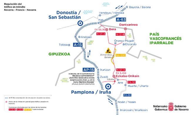 El acuerdo, según ha explicado el vicepresidente de Desarrollo Económico, Manu Ayerdi, tiene el doble objetivo de aligerar los sobrecostes del sector del transporte afectado por las restricciones del tráfico durante las obras en la N-121-A y de incentivar la circulación por la autovía de Leizaran, como vía idónea para la conexión de Pamplona con Francia para el grueso del tráfico de largo recorrido.