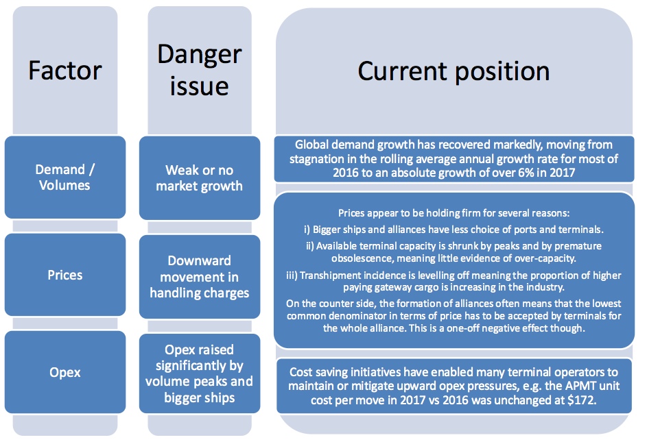 Hay una combinación de razones por las que los operadores han podido mantener los márgenes. La Figura 2 resume los problemas de peligro a los que se enfrentan los operadores de terminales, y la posición actual de cada uno de ellos.