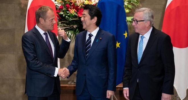 La Unión Europea y Japón han firmado un ambicioso acuerdo de libre comercio, que «es un poderoso mensaje contra el proteccionismo» de Donald Trump.
