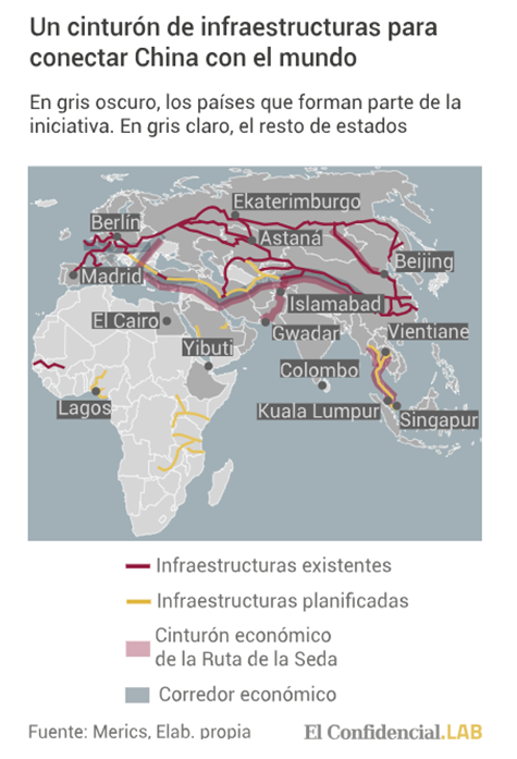 Más de 75 países se han adscrito ya a la iniciativa. En la práctica, en gran medida supone recibir créditos de instituciones chinas o controladas por Pekín –como el Fondo de la Ruta de la Seda, que cuenta con un presupuesto de 40.000 millones de dólares; el Banco Asiático de Inversión en Infraestructuras y otros bancos de propiedad estatal china; e incluso el Fondo Nacional de Pensiones-, proporcionados con muchos menos requerimientos que los préstamos de organismos occidentales, para financiar obras públicas que luego son construidas por compañías chinas. Ha sido definido en ocasiones como “un Plan Marshall para Asia”, aunque su escala es varias veces mayor.
