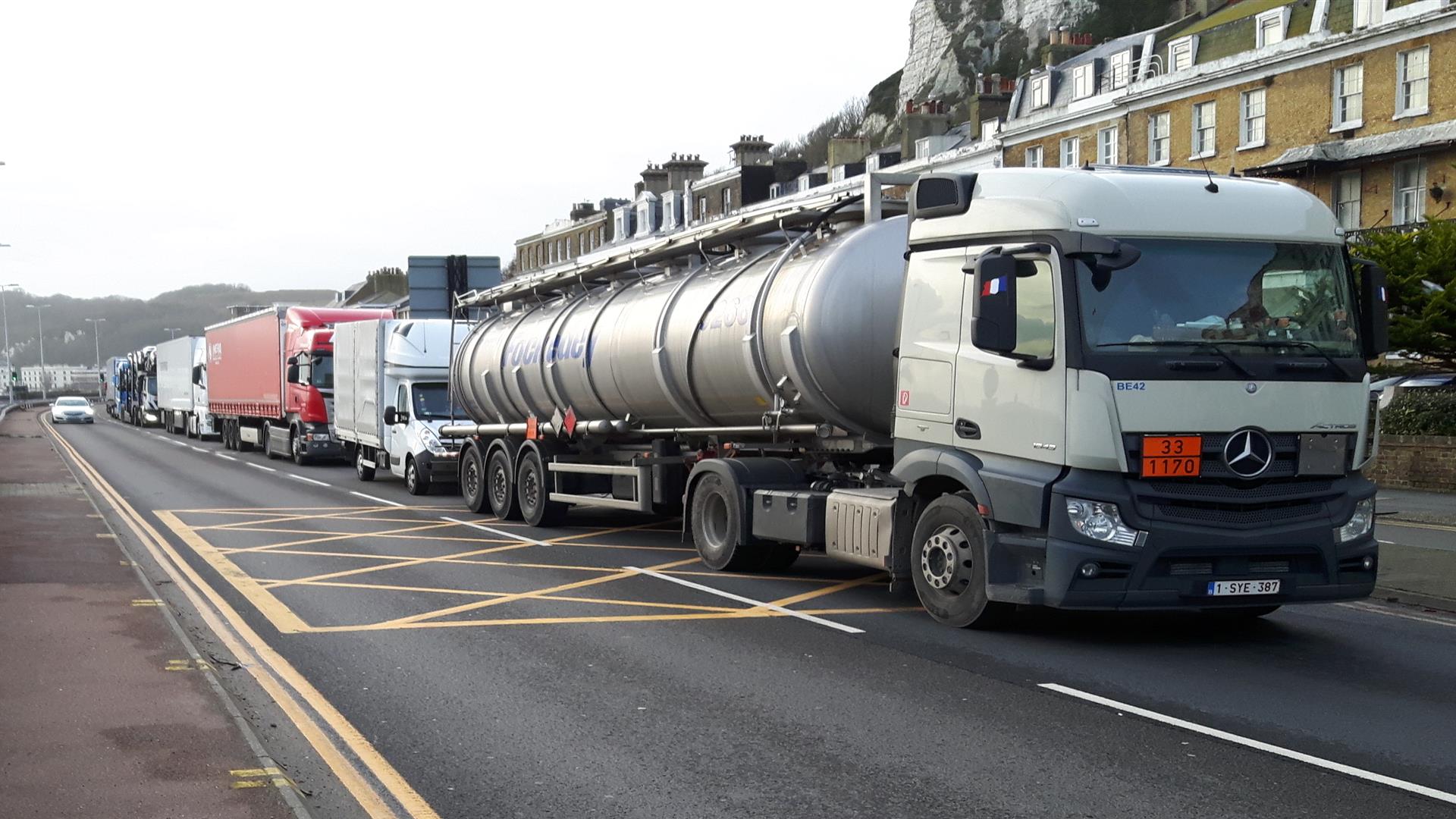 De los diez mil camiones que llegan diariamente a Dover, sólo 500 proceden de más allá de las fronteras de la UE, y son desviados en dirección al mar, hacia el único puesto de aduanas que queda, sobre las antiguas vías del tren, con cafetería, restaurante, lavandería y duchas para uso de los conductores. Entre las grietas del asfalto se vislumbran los adoquines que había antiguamente.