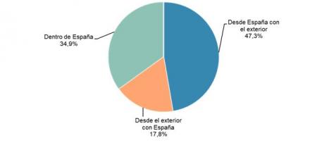 El volumen de negocio de las transacciones con origen en España y dirigidas hacia el exterior ha sido de 4.244 millones de euros, un 40,8% más que en el primer trimestre del año anterior. El 93,0% de las compras desde España hacia el exterior se dirigen a la Unión Europea.