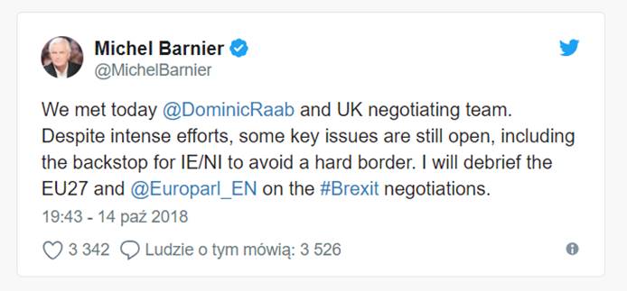 Esta información fue proporcionada por Michel Barnier, negociador de la UE para la salida del Reino Unido de la Comunidad.