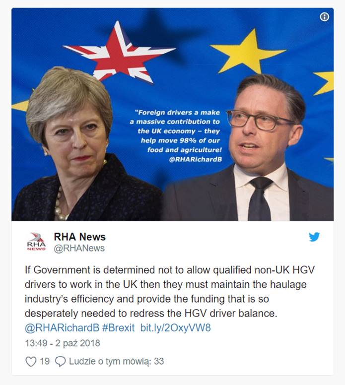 Theresa May, la primera ministra británica, presentó antes el plan de inmigración después del Brexit. El nuevo sistema está destinado a otorgar visas solo a empleados calificados que superan un cierto ingreso mínimo. Además, los ciudadanos de la UE no recibirán ningún acceso preferencial al mercado laboral británico. La RHA advierte que el nuevo sistema pondrá en peligro la industria del transporte.