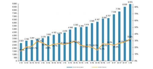 El comercio electrónico supera en España los 8.900 millones de euros en el primer trimestre de 2018, un 32,8% más que el año anterior