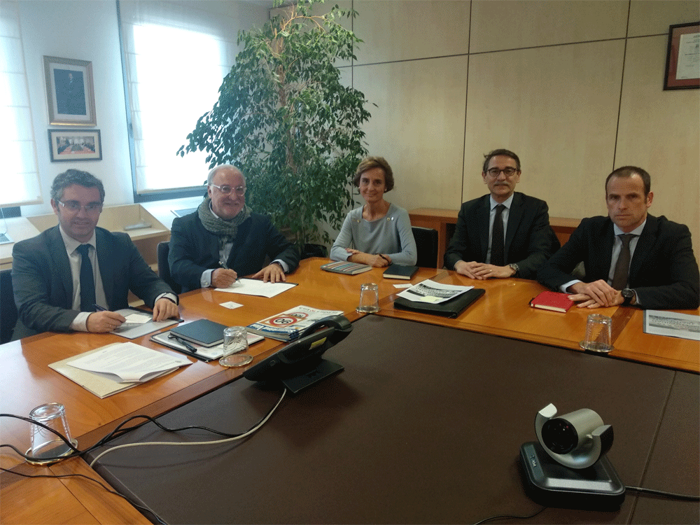Nurias Lacaci, Carlos Castán y Alejandro Sanchez en representación del Grupo para el Impulso a la Competitividad del Transporte se reunieron ayer con el Director de la DGT, Pere Navarro y el Subdirector de General de Gestión de la Movilidad y Tecnología, Jorge Ordás, para trasladarle un conjunto de inquietudes en relación a la normativa de esa Dirección General en el marco de los vehículos para el transporte de mercancías.