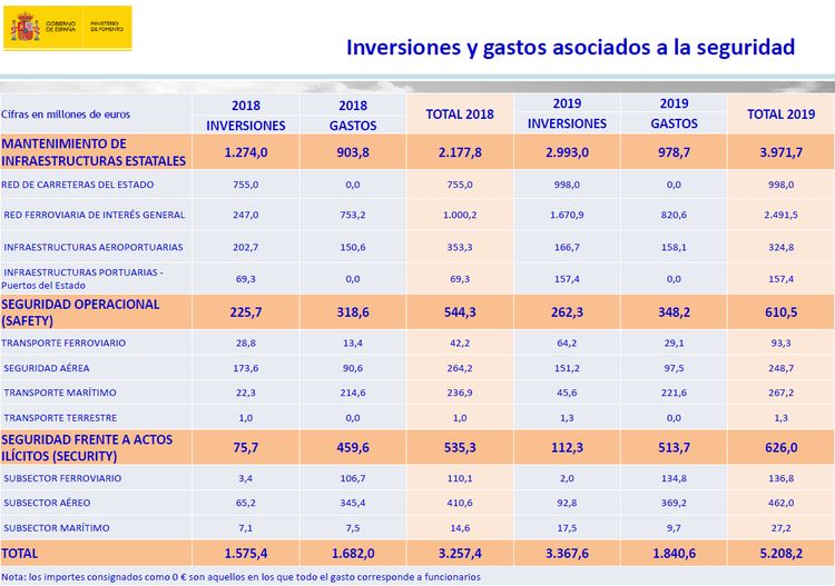 El Ministerio de Fomento presentó el pasado viernes al Consejo de Ministros el Informe sobre la Seguridad en los Transportes y las Infraestructuras, que concluye que España dispone de un sistema de transporte seguro, con determinadas áreas de mejora. En el documento se analiza la seguridad desde una perspectiva integral, en la que se abordan tanto el estado de conservación y mantenimiento de las infraestructuras de transporte y los efectos que el cambio climático puede acarrear sobre ellas, como el sistema de supervisión de la seguridad operacional, la seguridad contra actos ilícitos y la ciberseguridad. (Ver presentación informe)