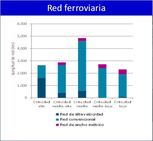 En cuanto a la afección del cambio climático a las infraestructuras ferroviarias, el informe deduce que ésta es nula o reducida en el 36 por ciento de la longitud de la red. En el caso de la red de Alta Velocidad, el porcentaje desciende al 20 por ciento, debido a la incidencia de las lluvias intensas sobre los taludes y el balasto en vía.