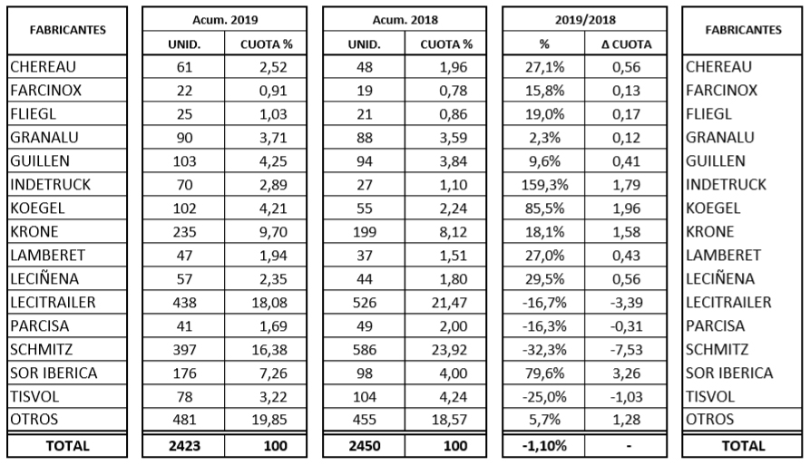 Lecitrailer comienza el ejercicio en lo más alto (438 unidades), seguido por Schmitz Cargobull (397) y Krone (235).