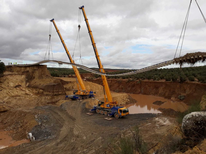 En la primera fase de las obras, focalizada en la zona del terraplén que se desestabilizó (P.K. 3/200) Adif ha llevado a cabo la construcción del puente previsto como solución al terraplén y la obra de drenaje transversal afectada por el desbordamiento del arroyo de las Tinajas, previamente realizados los trabajos previstos de topografía y acondicionamiento de la zona.