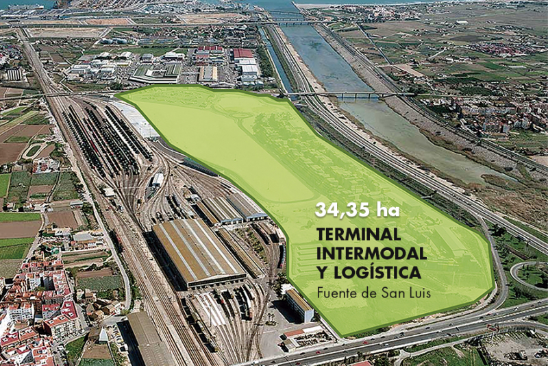 La Terminal Intermodal de la Fuente de San Luis tiene una importancia capital para el puerto de Valencia. En la imagen se puede observar el proyecto de esta infraestructura. La zona 0 corresponde a la actual terminal ferroviaria y cuenta con 4 pistas de 750 metros y 18 de entre 400 y 635. Marcada en azul, la zona 1 de la futura terminal ferroviaria sumará 4 pistas de 750 metros. La capacidad operativa será de 170.000 UTIs anuales y la capacidad de almacenamiento de 1.840 TEUs.
