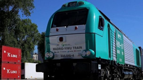 La línea de ferrocarril Madrid-Yiwu es una línea de mercancías que conecta la ciudad china con Madrid, recorriendo 13 052 kilómetros (más longitud incluso que el Transiberiano, la línea más larga hasta la fecha). Es uno de los exponentes principales de la Nueva Ruta de la Seda. En total, ocho países: China, Kazajistán, Rusia, Bielorrusia, Polonia, Alemania, Francia y España y tras el impulso de la Fundación para el Intercambio entre Yiwu y España, este tren no solo se convierte en una vía logística para llevar y traer mercancías, sino que también permite el intercambio comercial y cultural de ambos países.