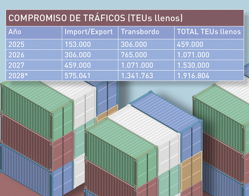 Hasta entonces, la empresa ha realizado una estimación según la cual el primer año tras su puesta en marcha, en 2025, ya alcanzará los 459.000 TEUs llenos (153.000 de importación y exportación y 306.000 de transbordo), cifra que se incrementará anualmente hasta 2028.