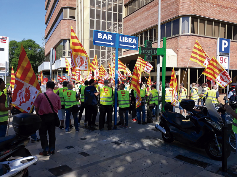 Ante esta situación, representantes sindicales protagonizaron ayer una concentración ante la sede de la Federació Catalana de Transports de Barcelona (Transcalit) con el fin de presionar a la patronal para que se acerquen posturas en las negociaciones.