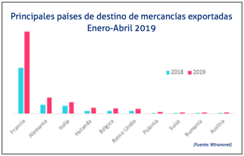 En este sentido, las cargas de exportación, con origen la península ibérica y destino el resto de Europa, se han disparado un 84% en los cuatro primeros meses de 2019 frente al mismo período del año pasado, mientras que, en sentido contrario, los movimientos de importación retroceden un 2,21% anual entre enero y abril de este mismo ejercicio, según demuestran las ofertas de cargas publicadas en la bolsa de Wtransnet.