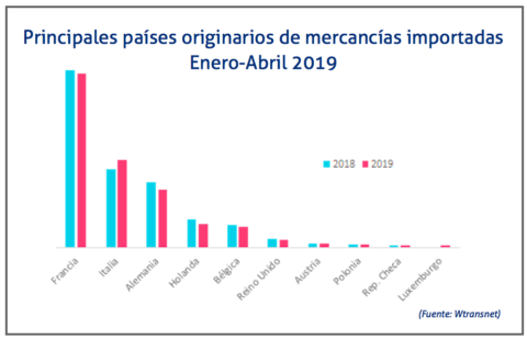 Al mismo tiempo, en cuanto a las cargas de entrada a la península ibérica, Francia, Italia y Alemania son los principales emisores de mercancías. Con mayor detalle, Italia es el único mercado que crece, frente a las caídas en las salidas hacia Francia, Alemania, Países Bajos, Bélgica y el Reino Unido.