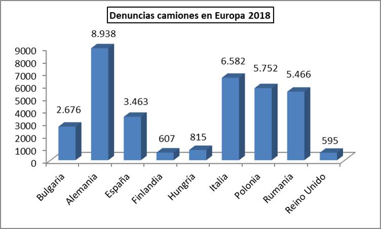 En España se tramitaron un total de 146.014 denuncias de las que 19.000 corresponden al tacógrafo, 54.122 están relacionadas con los tiempos de conducción y descanso y el resto se distribuyen entre: