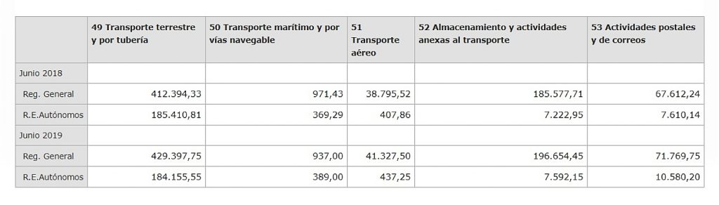 En cuanto al transporte aéreo, registra un total de 41.764 afiliados, lo que supone un notable incremento del 6,53% respecto a junio del pasado año. Esa subida se produce tanto en el régimen general, que supera los 41.300 afiliados, como en el régimen de autónomos, donde hay 437 personas dadas de alta.